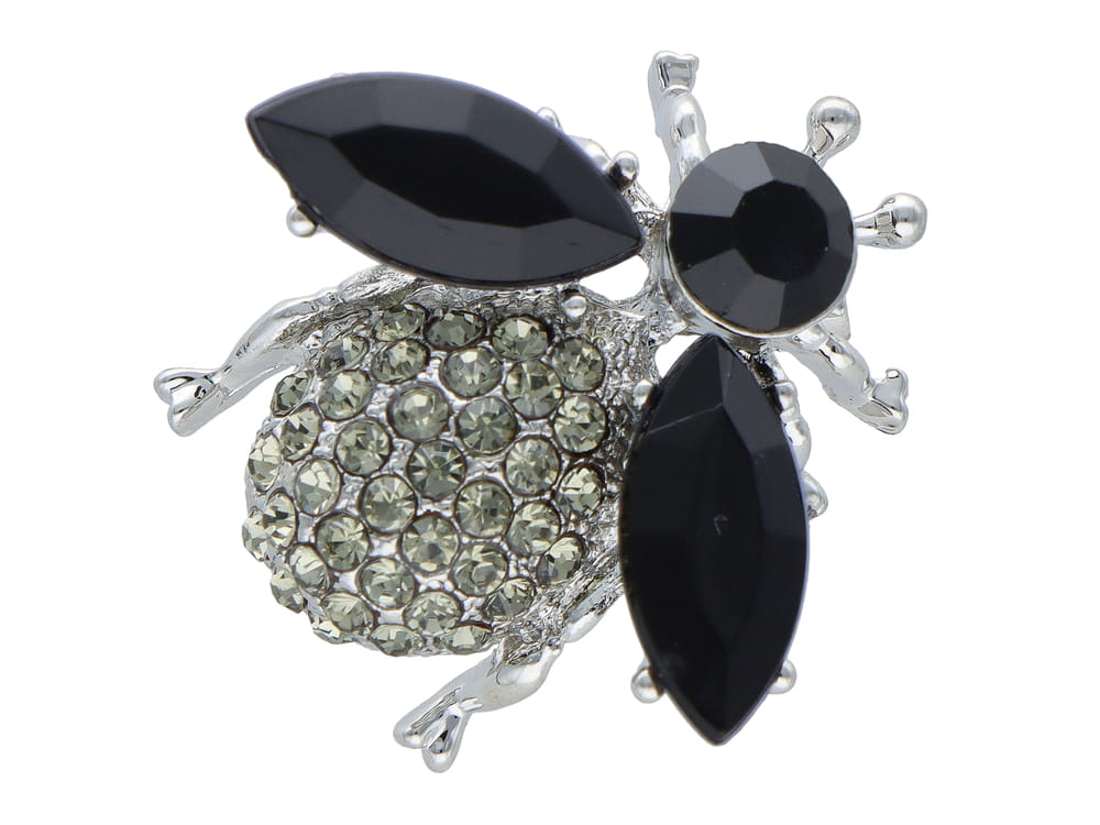 Broszka ozdobna Pszczoła z cyrkoniami srebrno-czarna