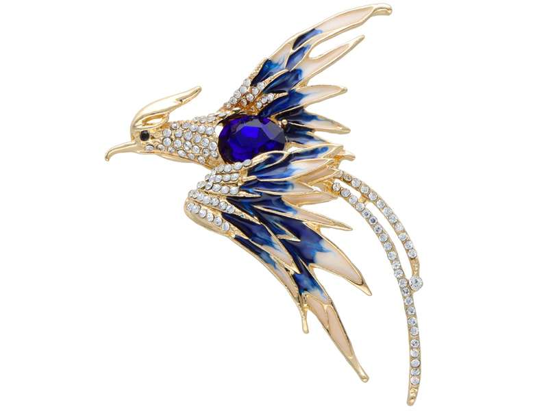 Bardzo efektowna broszka z możliwością noszenia jej na łańcuszku jako wisior. Feniks w kolorze złota i granatu jest naprawdę zjawiskowy i nie można koło tej broszki przejść obojętnie. Ozdoba zapakowana w eleganckie pudełko ze wstążką może być wspaniałym prezentem dla kogoś wyjątkowego.