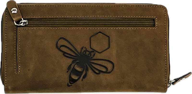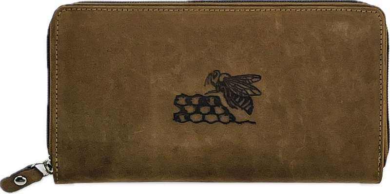 Portfel skórzany z pszczołą damski duży