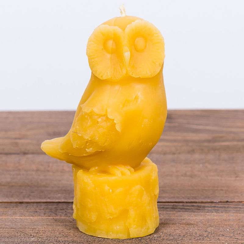 Odlewana ręcznie świeca woskowa , sowa duża, efektowna ,daje przyjemne ciepłe światło podczas spalania oraz przyjemny aromat miodu i propolisu.