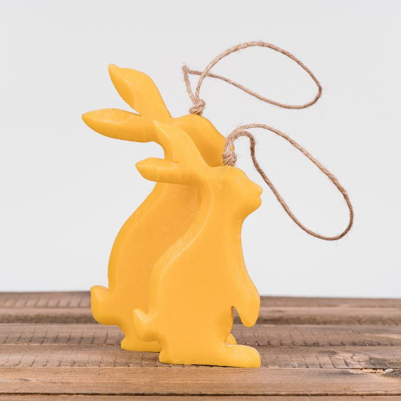 Zawieszka woskowa Zając Średni to gustowna, ekologiczna ozdoba wykonana ręcznie w całości z wosku pszczelego. Materiał ten to efekt uboczny wytwarzania przez pszczoły miodu, który jest wykorzystywany przez ludzi już od kilku tysięcy lat. Stanowi on wydzielinę gruczołów woskowych pszczół miodnych służącą do budowania plastrów w ulu.